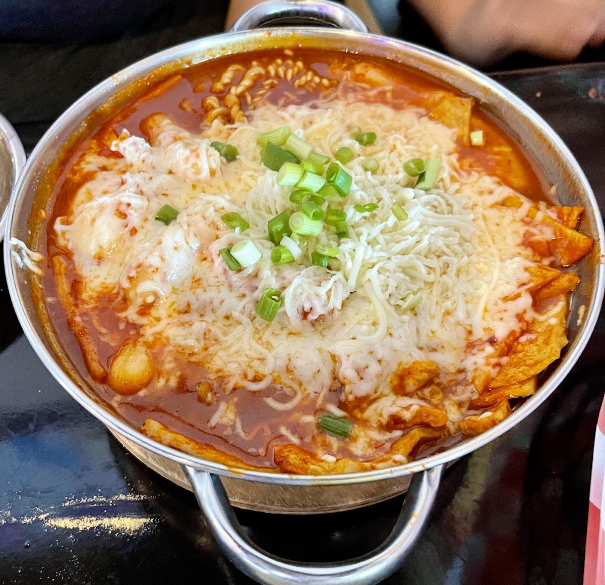 - TTeokbokki with Ramyun Noodles: A colorful fusion of textures and flavors, featuring tender noodles accompanied by a gooey boiled egg and mozzarella.